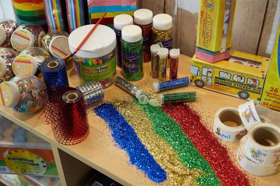 • Υλικά και σετ χειροτεχνίας, βαφές μπατίκ, πολύτιμοι λίθοι, ζωγραφική σε γυαλί, βιβλία δημιουργικής απασχόλησης, πούλιες, πέρλες, μαργαριτάρια, ζωγραφική σε πορσελάνη και μετάξι, ψαλίδια, χρώματα make-up, κηρομπογιές